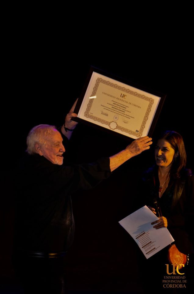 En el escenario, la Decana reconció la basta trayectoria del artista, y agradeció inmensamente su presencia en esta casa de estudios. Además aprovechó la oportunidad para anunciar que este es el primer diploma de una serie que emitirá esta Universidad, como una política para reconocer a referentes del arte y la cultura contemporáneas que nos visiten.