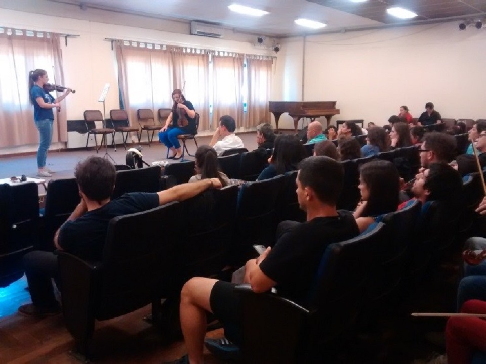 Es de destacar su experticia y adaptabilidad a los distintos niveles de nuestros estudiantes ya que trabajaron perfectamente tanto con jóvenes de nuestra Tecnicatura Universitaria -escuchando y corrigiendo Conciertos solistas para violín por ejemplo- así como con nuestros niños de 8 años de Iniciación musical violín -valorando y aplaudiendo sus primeras melodías en el instrumento.