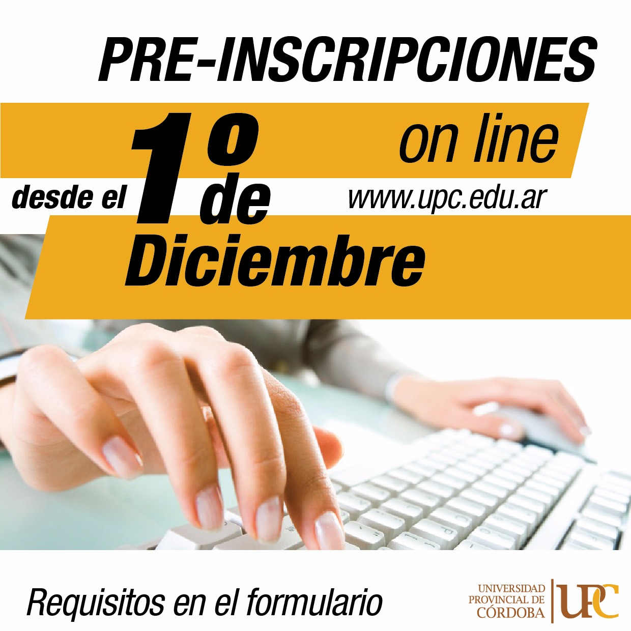 Quienes quieran iniciar alguna de las ofertas educativas publicadas deberán realizar el trámite on line a través de la página web de la UPC. Allí, deberán completar el formulario de pre-inscripción con los datos solicitados e imprimir el documento resultante.
