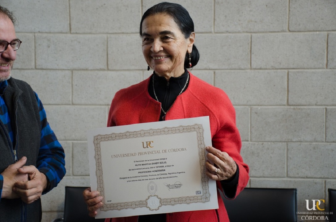 En este marco, el Director del Centro Universitario de Estudios Sociales (CUES) de la UPC, Darío Olmo, le otorgó a Ruth Shady el Título de Profesora Honoraria de la Universidad, en representación de la Rectora, Raquel Krawchik.