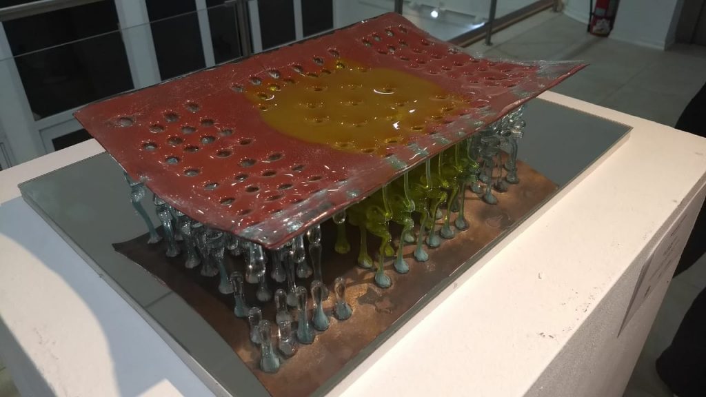 En esta convocatoria nacional, Enzo Valzacchi logró el Segundo Premio (adquisición) con su obra: “Si Señor”, comprendida por una técnica de investigación de fusión de cobre esmaltado y vidrio fusionado con caída libre.