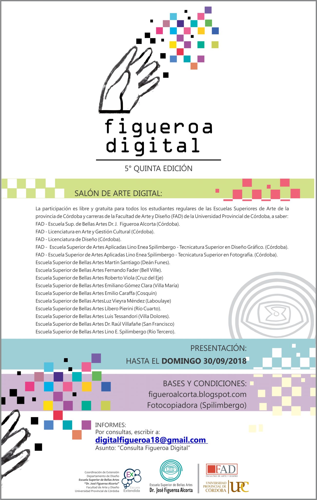 La participación es libre y gratuita para todos los estudiantes regulares de las Escuelas Superiores de Arte de la provincia de Córdoba y carreras de la Facultad de Arte y Diseño (FAD) de la Universidad Provincial de Córdoba.