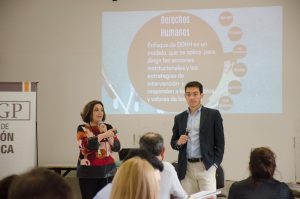 Alba Navarro explicó que “el enfoque de derechos humanos nos indica que las personas son consideradas agentes principales de su propio desarrollo, en lugar de receptores pasivos de productos y servicios; que la participación es a la vez un medio y un objetivo; y que las estrategias de intervención en la sociedad desde nuestras organizaciones deben procurar el empoderamiento, en lugar de negarlo”.