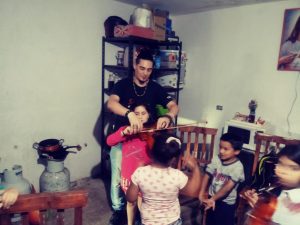 Coordinados por el profesor Juan Andrés Ciampoli, tres estudiantes de diferentes carreras del Conservatorio Provincial “Felix T. Garzón” construyen instrumentos con material reciclado con niños de los barrios “Nuestro hogar III”, “Ampliación Renacimiento” y “Nuevo Progreso”.