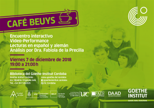 Esta nueva edición del Café Literario consiste en una introducción a la poética de Beuys y a la comprensión de cómo operan sus conceptos de “arte ampliado” y “escultura social”, entre otros, en algunas de sus video-performances como “Cómo explicar las pinturas a una liebre muerta“ (1965); “Coyote III. Konzert 1984“(con Nam June Paik) o “Tren Transiberiano”(1961-1969). Presentación a cargo de la docente e investigadora Dra. Fabiola de la Precilla (UNC/UPC).