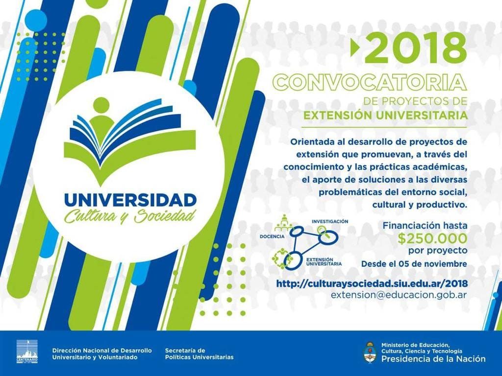 La Universidad Provincial de Córdoba informa que el plazo para la presentación de proyectos de la Convocatoria de proyectos de Extensión Universitaria, “Universidad, Cultura y Sociedad 2018”, se extendió hasta el viernes 21 de diciembre de 2018 inclusive.