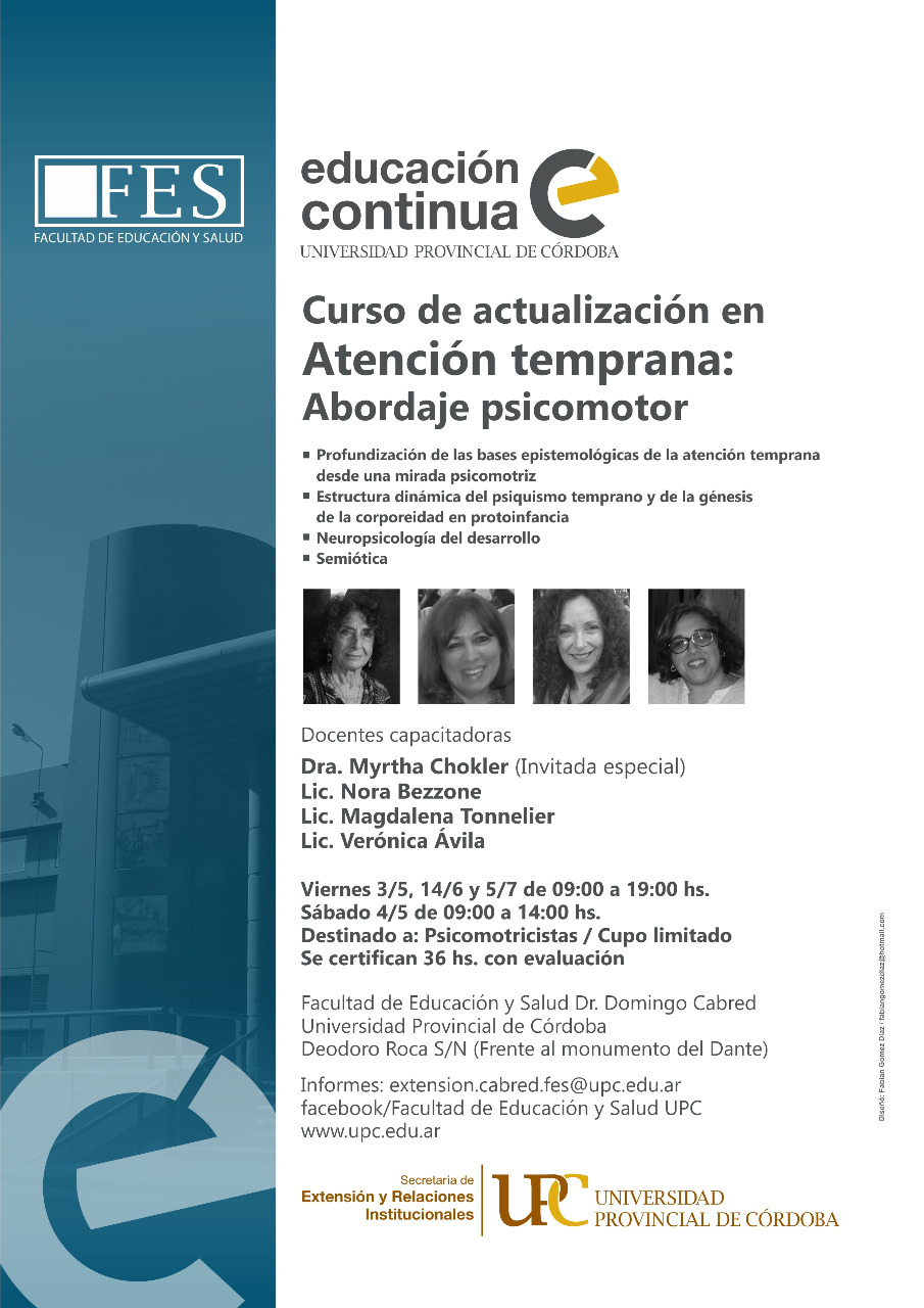 - Módulo 3: Intervención psicomotriz en Atención temprana: dispositivos. Neuropsicosociología del desarrollo. Manifestaciones corporales tempranas. Perfiles discursivos y narrativos en el despliegue corporal.