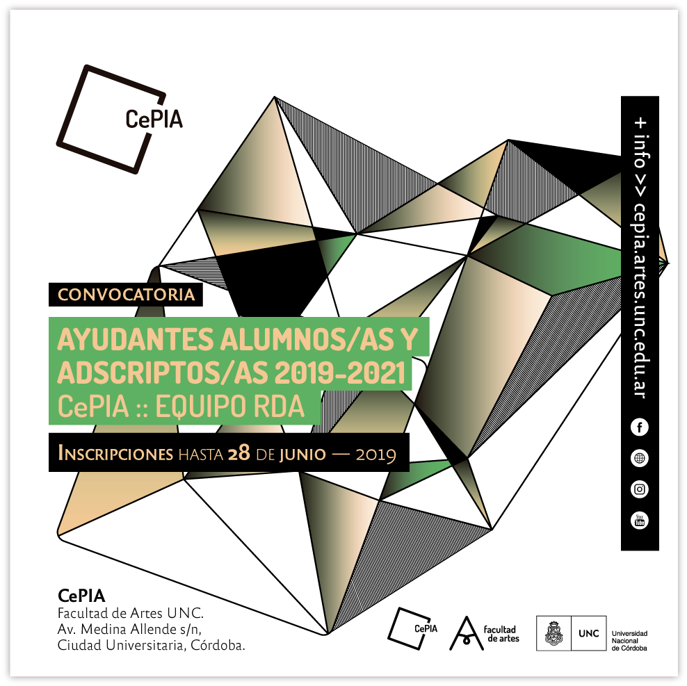 Pueden inscribirse como Adscriptos/as: egresados/as de la Facultad de Artes o carreras afines de cualquier universidad pública del país (entre ellas de la UPC), así como de universidades extranjeras públicas; y como Ayudantes Alumnos/as estudiantes de la UNC.