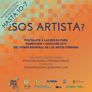 La Universidad Provincial de Córdoba informa que se prorroga hasta el 10 de julio el plazo para inscribirse en la propuesta de becas para artistas del Fondo Regional de las Artes y la Transformación Social.