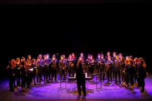 El número artístico de la jornada también tuvo la intención de reflejar la importancia de la diversidad cultural. Para ello compartieron el escenario el Coro Juvenil mixto del Instituto Domingo Zipoli, dirigido por la Prof. María Luz Salinas, y el grupo musical de rap cordobés Flores del Desierto.