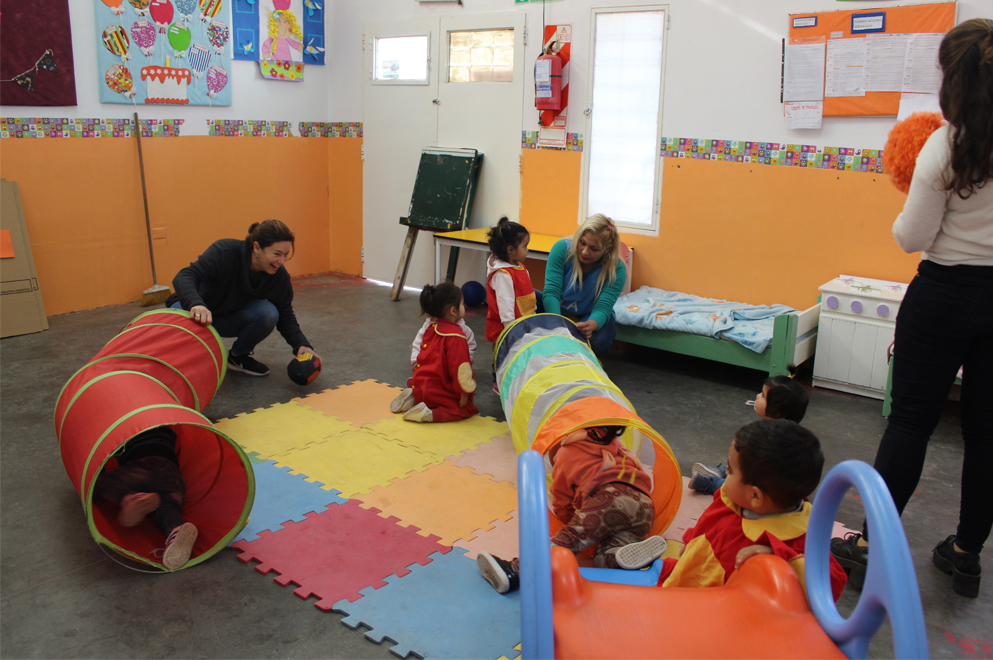 El proyecto se centra en el cuidado de los primeros años del desarrollo, en términos de disponibilidad atenta, afectiva y participativa en favor de la infancia. Distingue a esta propuesta la consolidación no sólo de la interdisciplina sino también la intersectorialidad: La Educación representada en la voz de la Universidad. La Salud representada por la Dirección de Jurisdicción de Maternidad e Infancia y desde las organizaciones sociales, se llega al programa de Salas Cuna coordinado por la Secretaria de equidad y promoción del empleo.