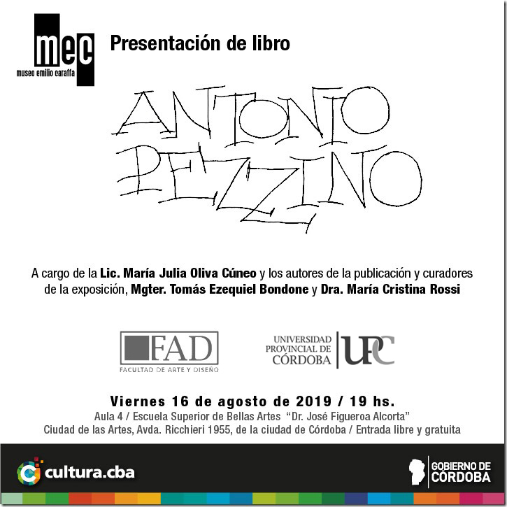 La Facultad de Arte y Diseño de la Universidad Provincial de Córdoba invita a la presentación del libro Antonio Pezzino, en conmemoración al reconocido artista plástico argentino uruguayo.