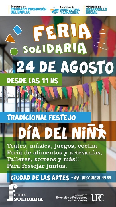 Creemos importante compartir que esta fiesta fue pensada y organizada entre los y las integrantes de nuestra Universidad. Por eso, quienes vengan a compartir los festejos podrán disfrutar de actividades recreativas que realizarán docentes y estudiantes, como así también recorrer los puestos en la Feria solidaria donde se encuentran stands de la comunidad educativa UPC. También contamos con la participación de la Secretaría de Agricultura y la Secretaría de Equidad y Promoción del Empleo de la provincia.