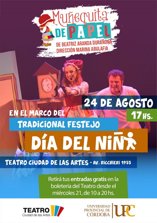 -17 hs: en Sala Mayor del teatro una obra de Marina Abulafia: Muñequita de Papel.