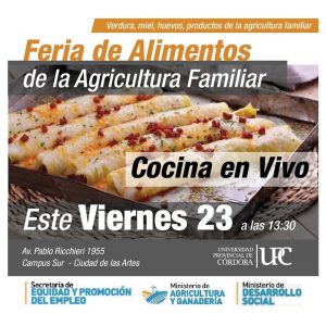 Este año los festejos  comenzarán el viernes con dos propuestas: A partir del mediodía podrán visitar la Feria con gran variedad de alimentos, productos regionales de la agricultores y productores familiares. Además desde las 13:30 habrá una clase de cocina en vivo llevada a cabo por estudiantes de la Facultad de Turismo y Ambiente de la UPC pertenecientes al segundo año de la Carrera de Producción Gastronómica y del espacio curricular de la Práctica Profesionalizante a cargo del profesor Julio César Ordóñez.