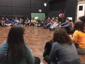 Coorganizado por la Secretaría de Extensión y Relaciones Institucionales y la dirección de la Escuela Roberto Arlt de la Facultad de Arte y Diseño, alrededor de 50 participantes tuvieron la ocasión de familiarizarse con la trayectoria, los desafíos y aprendizajes del trabajo realizado por Simone Requiao, en su experiencia de implementar algunos dispositivos del teatro de los oprimidos en contexto de encierro en Bahía (Brasil).