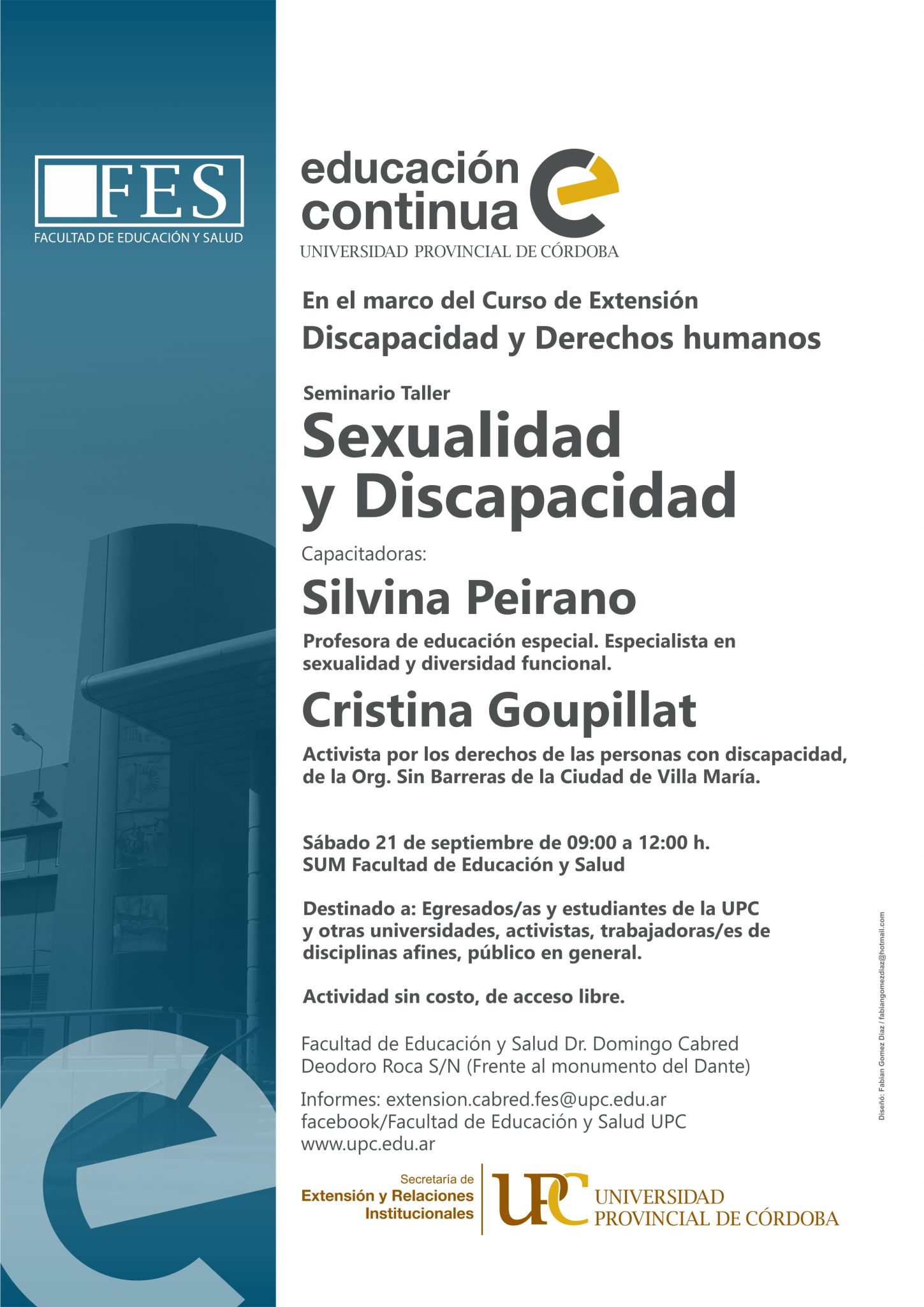 Destinado a: Egresados/as y estudiantes de la UPC y otras universidades, activistas, trabajadoras/es de disciplinas afines, público en general.