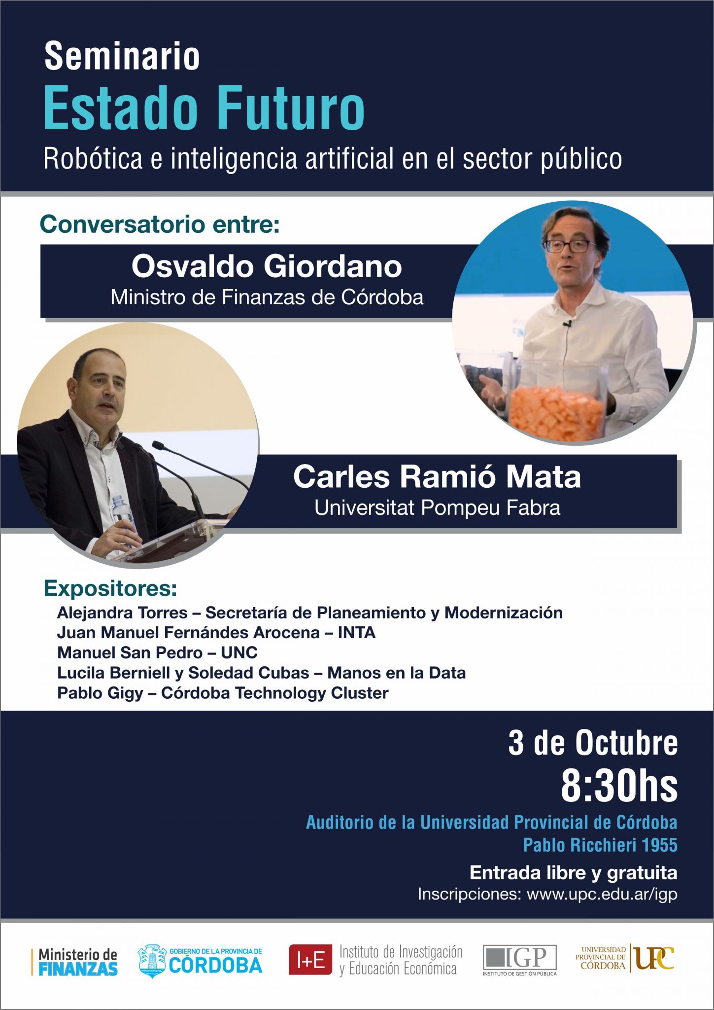 Durante el evento, se desarrollará un conversatorio entre Osvaldo Giordano, ministro de Finanzas de Córdoba, y Carles Ramió Mata, de la Universitat Pompeu Fabra.