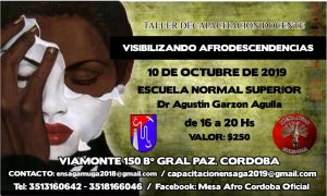 El evento, organizado por la Mesa Afro de Córdoba, se realizará el próximo jueves 10 de octubre desde las 16 hasta las 20 en la Escuela Normal Agustín Garzón Agulla (Viamonte 150 Bº General Paz).