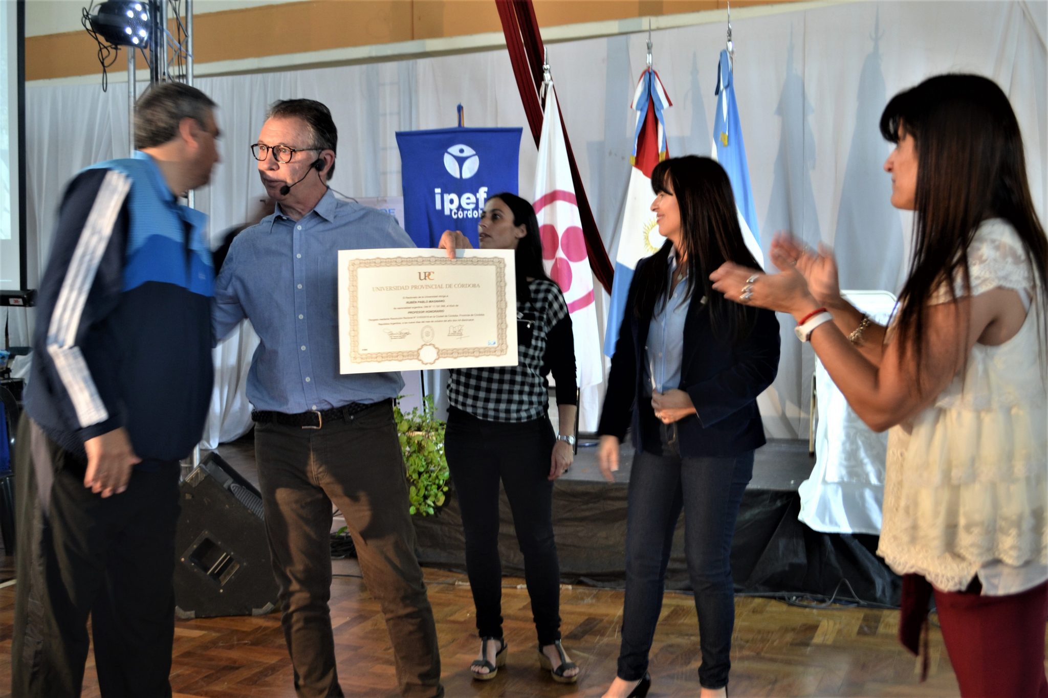 Al finalizar su exposición, la Decana de la FEF, Mgter. Carola Tejeda, le hizo entrega del título de Profesor Honorario de la UPC. El profesor expresó: «Mi currículum dice en la primera línea profesor de educación física, a mí me quedó grabado a fuego mi paso por el profesorado. Me inculcó una gran cantidad de valores, la didáctica, la psicología, la pedagogía, eso me ayudó muchísimo”.