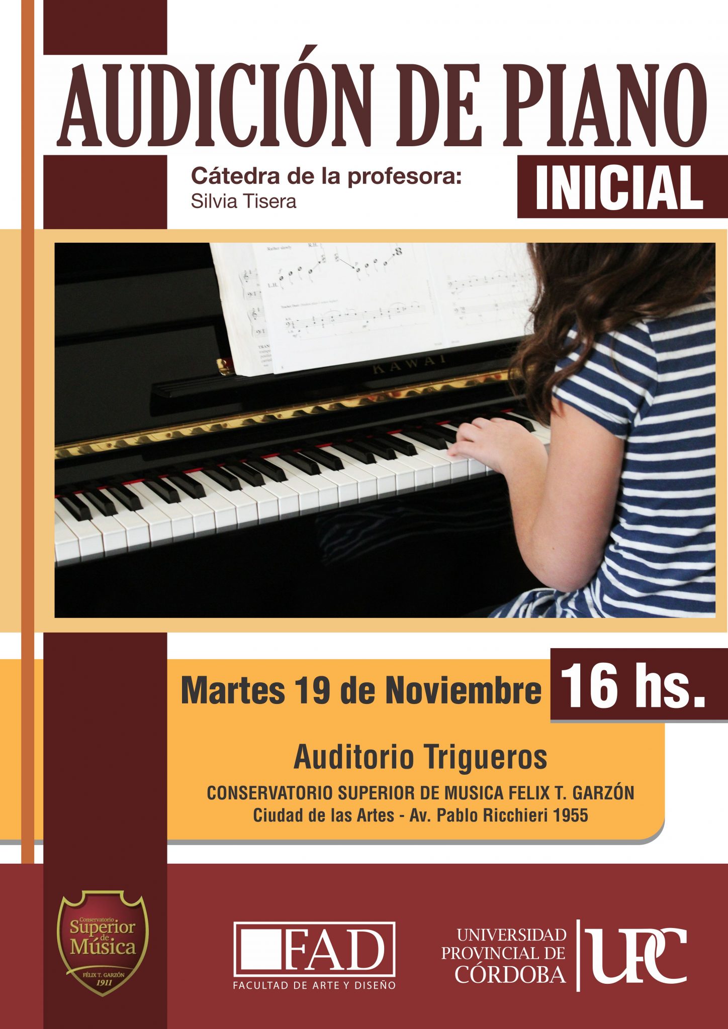 La Facultad de Arte y Diseño de la Universidad Provincial de Córdoba invita a participar de la Audición de Piano de Nivel Inicial que se realiza en el marco de la cátedra de la profesora Silvia Tisera.