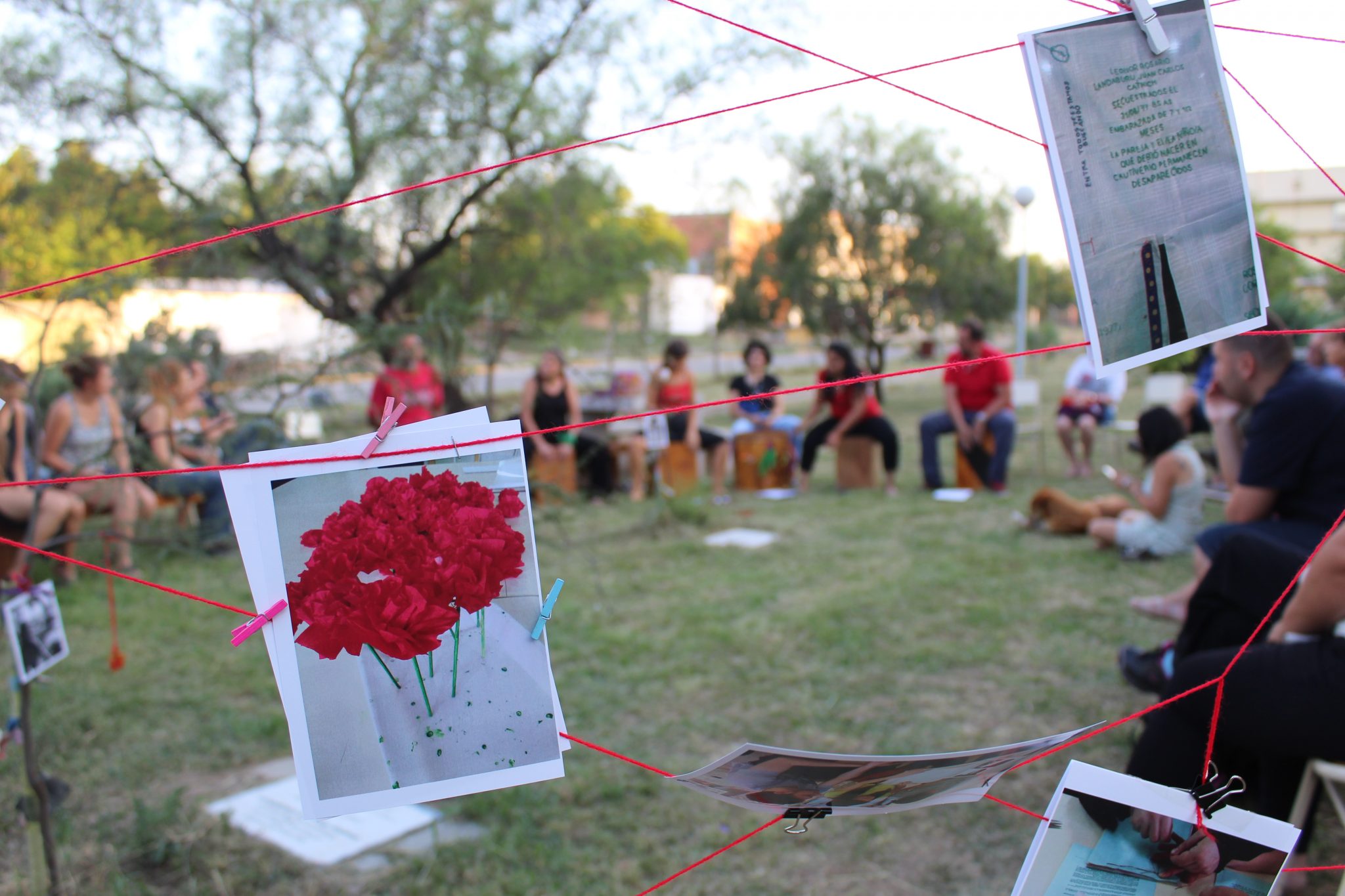 Familiares, amigos/as, miembros de la comunidad educativa y participantes de talleres del Espacio de Participación Cultural de la FES, estudiantes del PIT del IPEM 270 Manuel Belgrano y el grupo de tamboreros/as La Tupac, recordaron a Leonor y a Nélida, con palabras, música y poesía.