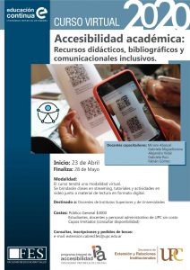 Se abordarán los siguientes contenidos: Educación inclusiva en el ámbito de la educación superior. Representaciones sobre la discapacidad. Barreras de acceso al conocimiento. Accesibilidad académica. Criterios de elaboración de recursos didácticos, bibliográficos y comunicacionales inclusivos.