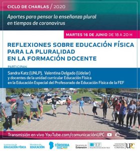 El encuentro forma parte del ciclo de charlas Aportes para pensar la enseñanza plural en tiempos de coronavirus y está destinado a estudiantes y docentes de unidades curriculares vinculadas a la educación física inclusiva, como así también a graduados y público general interesado en la temática.