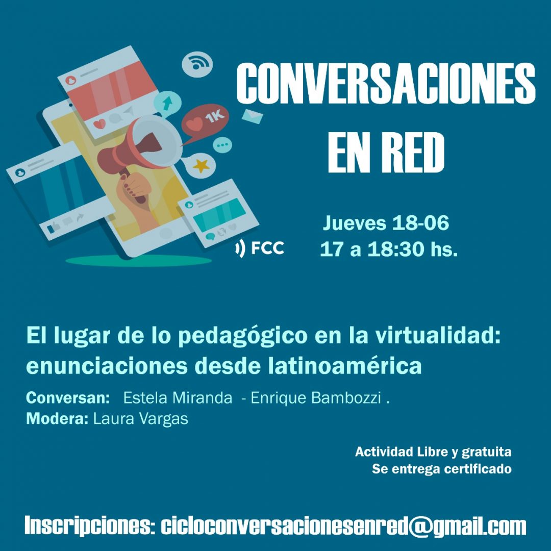 El lugar de lo pedagógico en la virtualidad: enunciaciones desde latinoamérica es la consigna del próximo encuentro se realizará el jueves 18 de junio a las 17. El conversatorio contará con la participación del vicerrector de la UPC, Enrique Bambozzi junto a Estela Miranda, Doctora en Ciencias de la Educación.