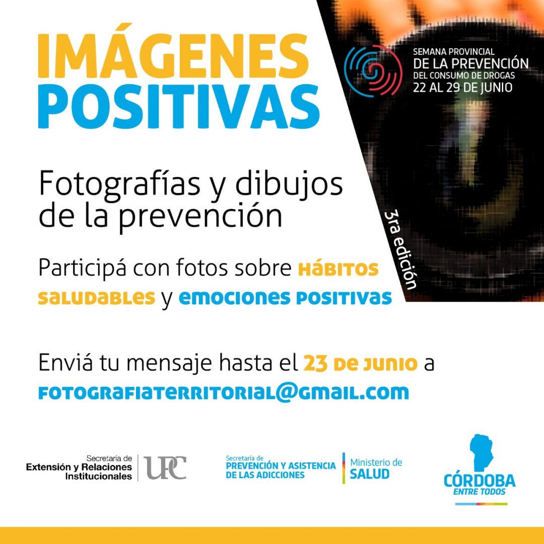 La Secretaría de Extensión y Relaciones Institucionales de la Universidad Provincial de Córdoba te invita a participar de la tercera edición del Concurso de Fotografía y Dibujo Imágenes Positivas: Fotografías y Dibujos de la Prevención organizado desde el programa de Prevención Territorial en el marco de la Semana de la Prevención del Consumo de Drogas.