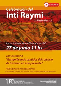 titucionales de la Universidad Provincial de Córdoba invita a participar de dos nuevos eventos virtuales que se realizarán para conmemorar el Inti Raymi, la ancestral fiesta del sol.