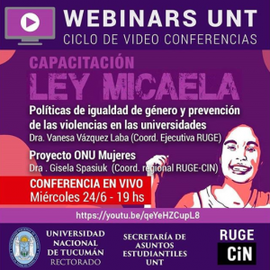 La primera es un Webinario que realiza la Universidad Nacional de Tucumán junto con la Red Universitaria contra la violencia de Género (RUGE), espacio que la UPC también integra.