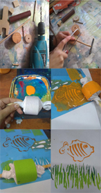 «Es así que nos planteamos, qué materiales existentes encontramos en nuestro entorno, con conciencia de reciclado para suplantar sin crear daños ecológicos, fomentando la observación, experimentación y creación de herramientas y materiales para la producción artística y pedagógica, específicamente en el área.»