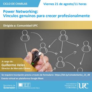 El próximo viernes 21 de agosto, a las 11 horas, se realizará la charla Power Networking: Vínculos genuinos para crecer profesionalmente, vía Google Meet.