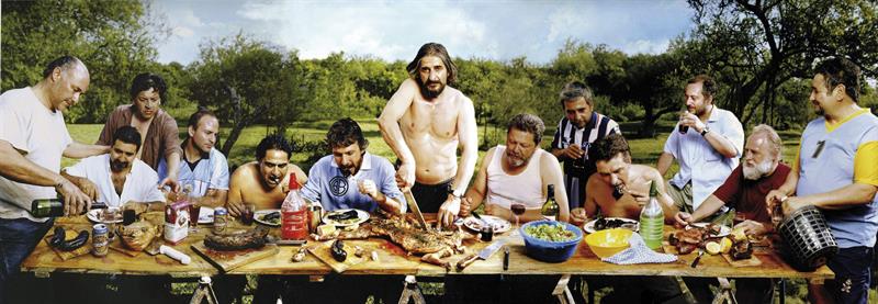 Obra: «Asado en Mendiolaza». El fotógrafo surrealista argentino Marcos López cuenta con más de 20 años como profesional, fusiona pintura y fotografía a partir de obras como «La última cena», de Leonardo Da Vinci. «Hay muchas versiones de La última cena: esta es la versión argentina, afirma Marcos López.»
