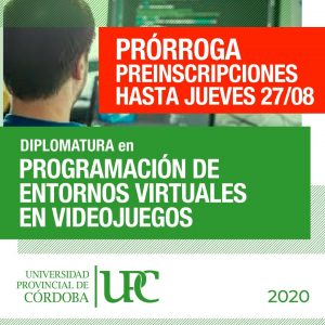 Tras la respuesta ampliamente favorable que tuvo en 2019 la primera Diplomatura en videojuegos que ofreció la Universidad Provincial de Córdoba, este año su Secretaría de Extensión y Relaciones Institucionales presenta dos nuevas ofertas: las Diplomatura en Programación en Entornos Virtuales y Diplomatura en arte y animación digital.