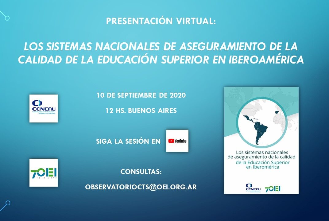 La Universidad Provincial de Córdoba te invita a participar de la presentación  internacional de Los sistemas nacionales de aseguramiento de la calidad de la educación superior en Iberoamérica, la nueva publicación realizada en conjunto por la Organización de Estados Iberoamericanos (OEI) y la Comisión Nacional de Evaluación y Acreditación Universitaria (CONEAU) de la República Argentina.