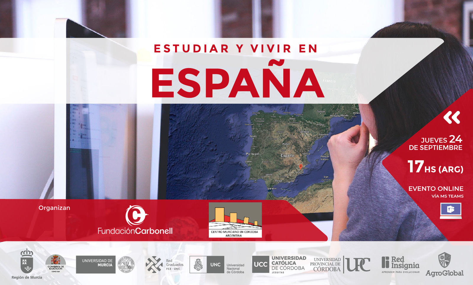 El área de Internacionalización e Interculturalidad de la Secretaría de Extensión y Relaciones Institucionales UPC informa que la Fundación Carbonell y el Centro Murciano en Córdoba organizan un webinario informativo «Estudiar y vivir en España 2020».