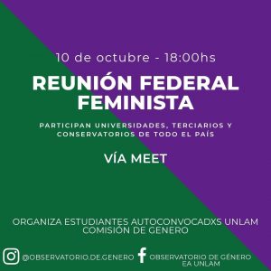El programa de género de la UPC te invita a participar de la Segunda Reunión Federal Feminista de Educación Superior organizada por la Comisión de Género de la agrupación Estudiantes Autoconvocadxs de la Universidad Nacional de La Matanza (UNLaM).