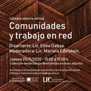 La Facultad de Educación y Salud de la Universidad Provincial de Córdoba invita a la Cátedra abierta virtual: Comunidades y trabajo en red.