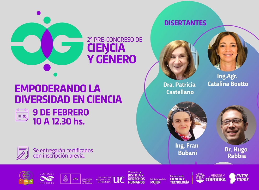 La Segunda actividad Pre-Congreso Ciencia y Género es organizada por los Ministerios de Ciencia y Tecnología, de Justicia y Derechos Humanos y de la Mujer de la Provincia de Córdoba, junto al CCT CONICET Córdoba, Universidad Nacional de Córdoba y Universidad Provincial de Córdoba.