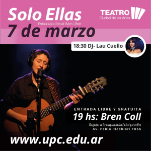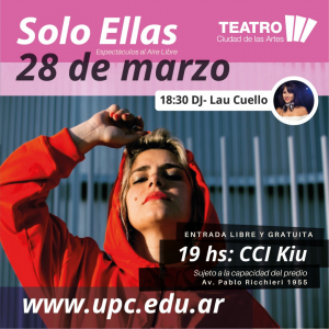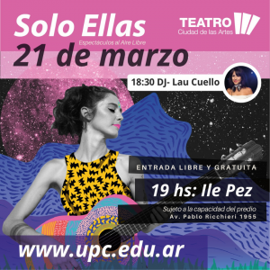 El Teatro Ciudad de las Artes de la Universidad Provincial de Córdoba (UPC) lanza su temporada 2021 este domingo 7 y abre sus puertas nuevamente al público con el ciclo conmemorativo del día de la mujer «Solo Ellas», un ciclo de música en vivo que contará con la participación en su totalidad de artistas mujeres nacidas o radicadas en Córdoba.