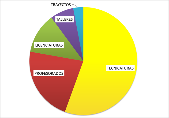 En la UPC se brindan distintos tipos de propuestas educativas, las más elegidas fueron las tecnicaturas con un 55% de los postulantes; luego los profesorados tuvieron un 22%, y las licenciaturas un 12%, mientras que los ya clásicos talleres y trayectos artísticos, destinados principalmente a niños/as y adolescentes, conformaron el 10% restante.