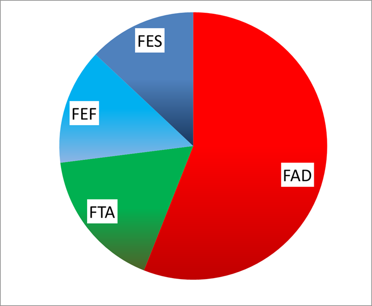La Facultad de Arte y Diseño, con su amplia oferta formativa, fue la que registró la mayor cantidad de preinscripciones consolidándose como la más solicitada con el 56% de los postulantes; por su lado, en la Facultad de Turismo y Ambiente se registraron el 17% de los aspirantes; el 14% en la Facultad de Educación Física y el 13% en la Facultad de Educación y Salud.