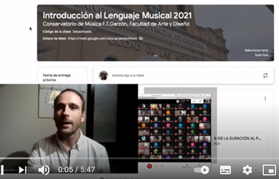 Desde la asignatura: «Introducción al Lenguaje Musical» perteneciente al Profesorado de Música, -Conservatorio Félix T. Garzón, FAD- UPC-, se realizó una presentación de estudiantes ingresantes 2021 con el Profesor Lic. Nicolás Lara Sileoni.