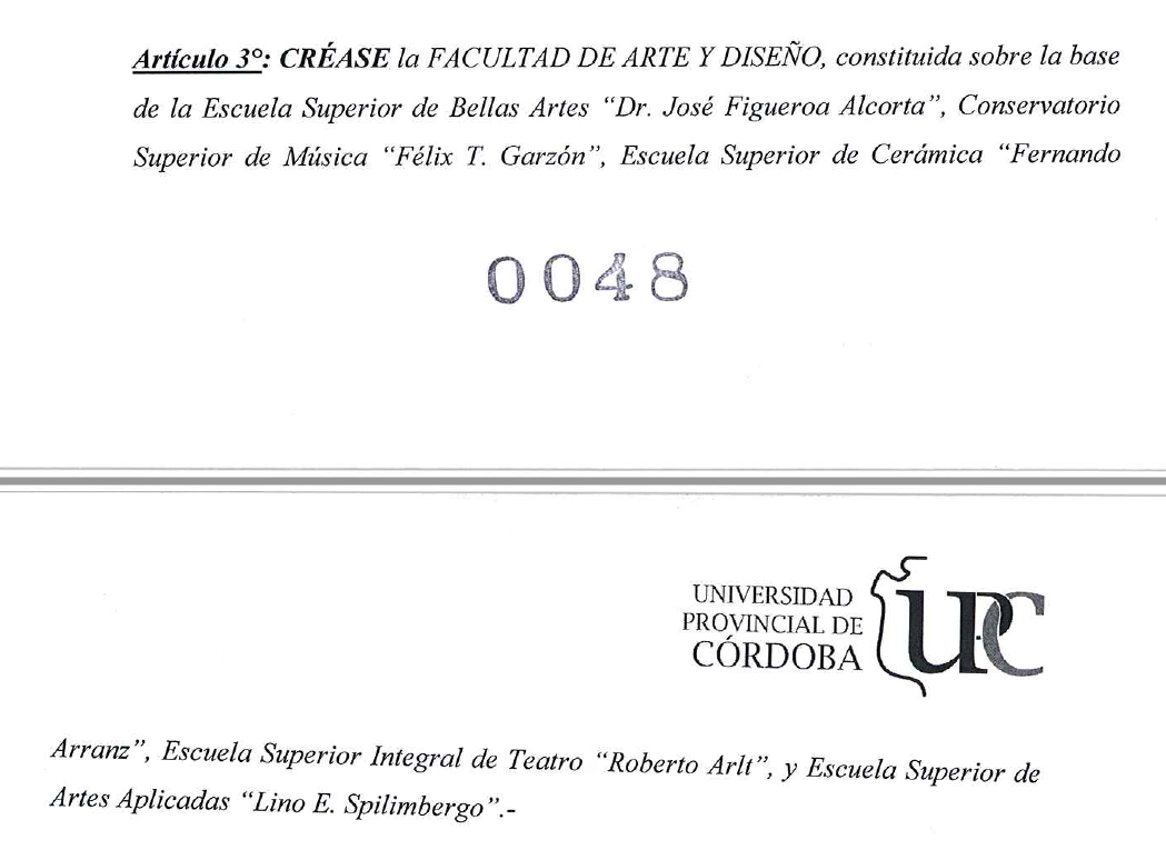 La Facultad de Arte y Diseño (FAD) de la Universidad Provincial de Córdoba celebra sus seis años de fundación, a partir de la Resolución Rectoral 0048 del 6 de abril de 2015.