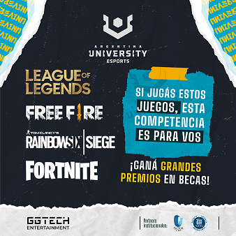 Los videojuegos seleccionados para esta primera temporada de University Argentina son: League of Legends, Fortnite, Free Fire y Rainbow Six: Siege. Es importante destacar que GGTech Entertainment cuenta con las licencias exclusivas de las empresas desarrolladoras para realizar competencias de esports en todos los niveles educativos.