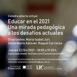 La actividad contará con las disertaciones de María Isabel Juri, Stella Maris Adrover, Raquel Carranza y estará coordinada por la Licenciada y Profesora Silvina Testagrossa.