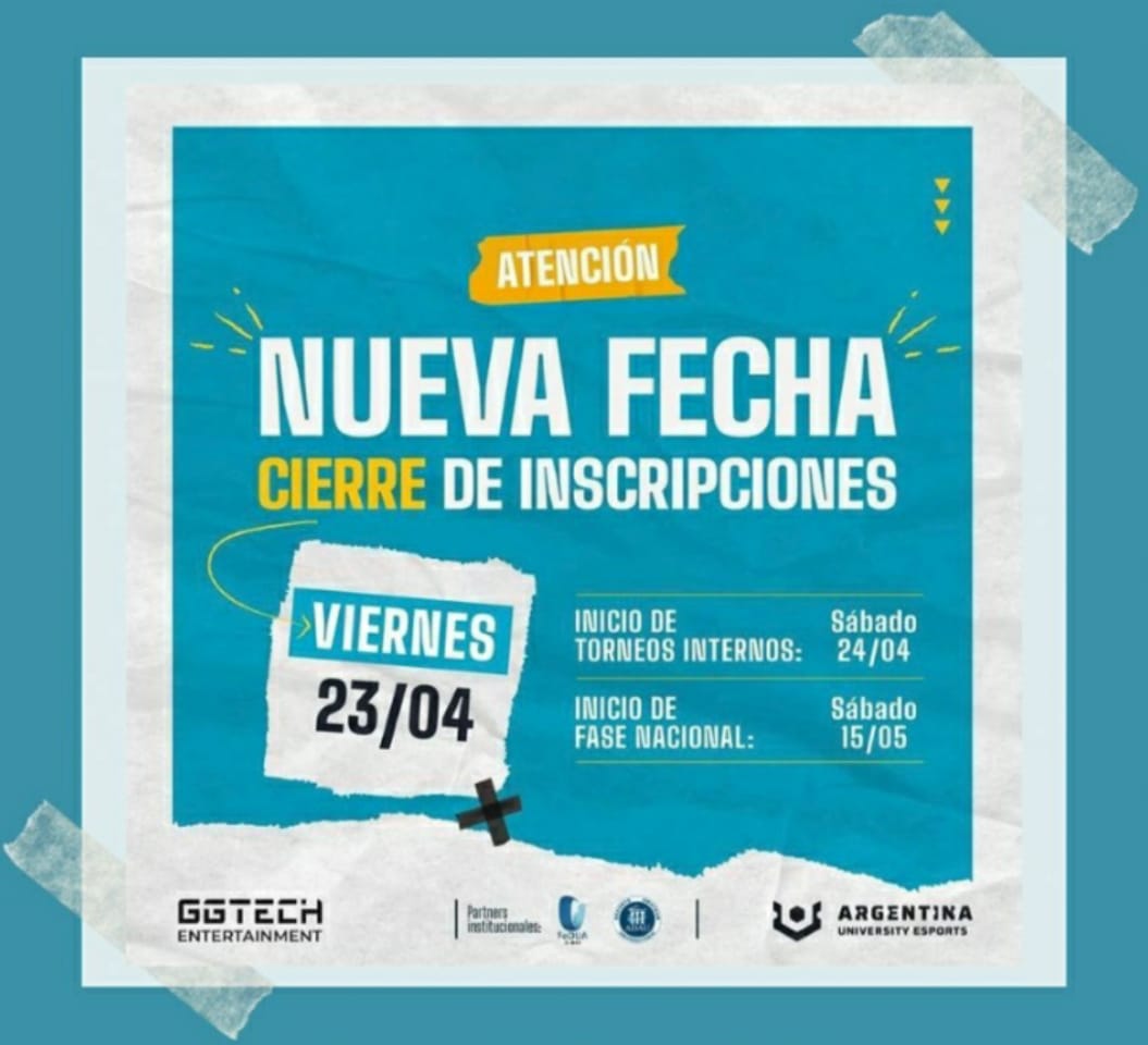 Las inscripciones son gratuitas y están abiertas hasta el viernes 23 de abril de 2021 en https://universityesports.com.ar/