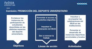 Asimismo, la Comisión de Promoción del Deporte Universitario está generando líneas de acción tendientes a fortalecer las instancias de participación de estudiantes deportistas en los diferentes espacios del deporte.